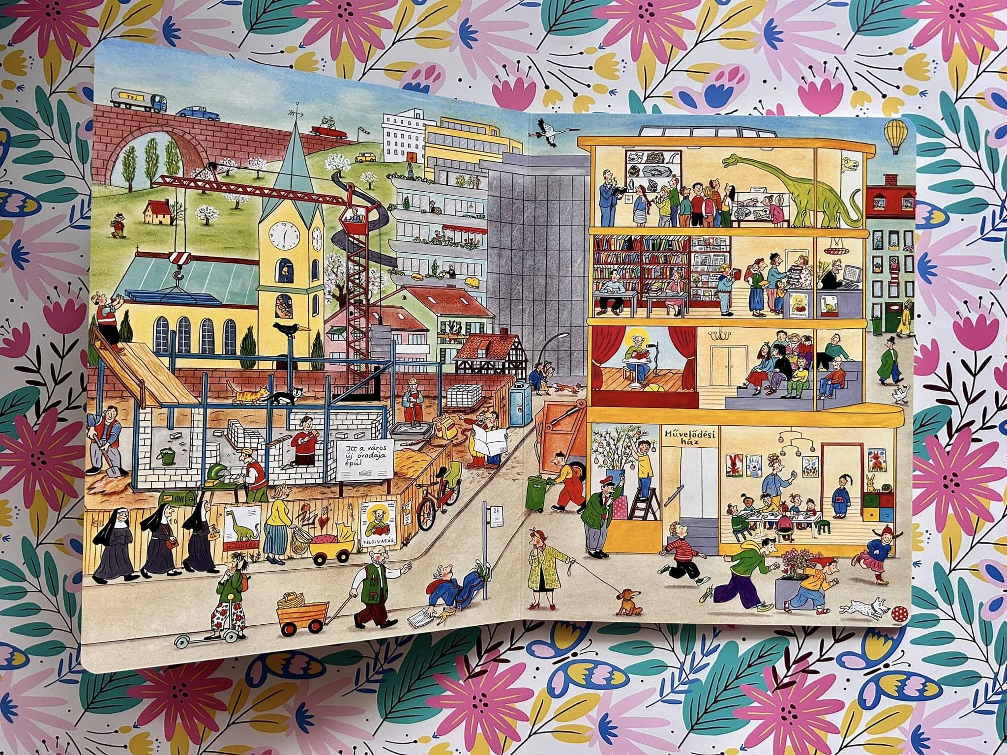 Az alkotóművész sok kedves, humoros történetet rejt el gondosan megrajzolt, részletgazdag képein.